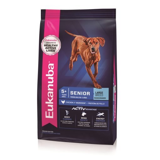 Alimento balanceado Eukanuba diseñado para perros de raza grande de más de 5 años de edad. Contiene ingredientes como pollo para músculos fuertes, DHA, y un complejo DentaDefense para la salud dental, además de L-carnitina para el control de peso, y optimizados niveles de calcio y fósforo para articulaciones y huesos fuertes.