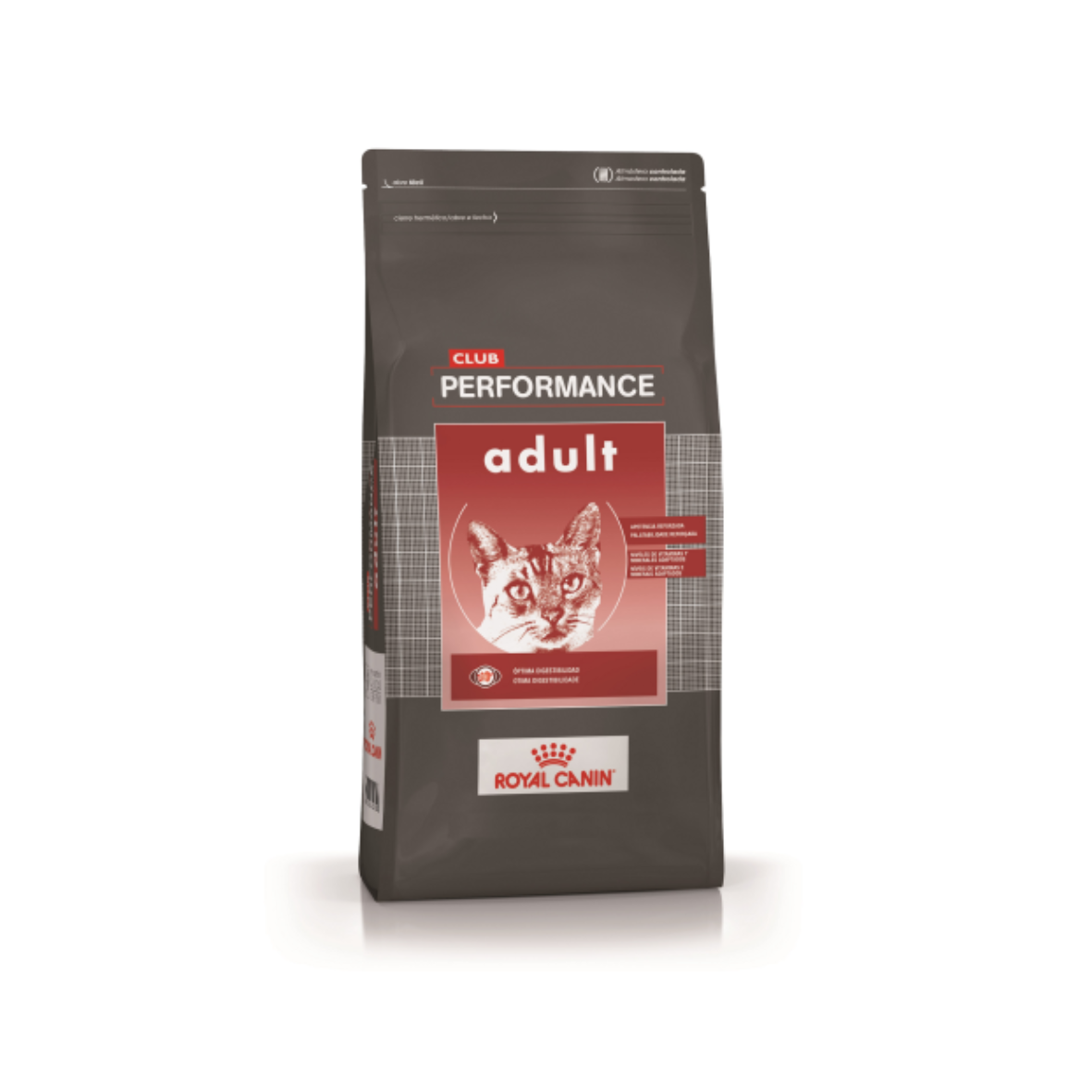 Alimento balanceado Performance diseñado para gatos adultos. Contiene maíz, harina de subproductos de pollo, arroz, harina de soja, gluten de maíz, grasas animales, y subproductos de carne, aportando proteína, grasas, fibra y minerales para gatos activos, con taurina y vitaminas para una nutrición equilibrada y digestibilidad optimizada.