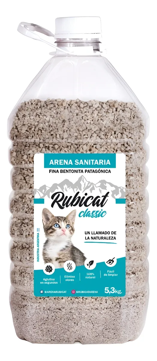 Arena aglutinante para gato, fabricada 100% con bentonita sódica, que aglomeran líquidos y sólidos para facilitar la limpieza de la bandeja sanitaria.