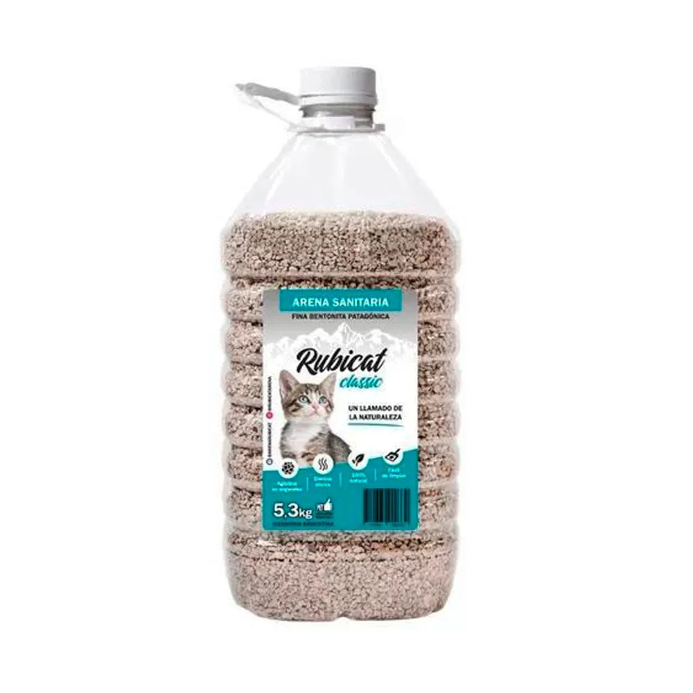 Rubicat Classic es una arena sanitaria para gatos de alta calidad, compuesta 100% por bentonita sódica natural sin químicos añadidos. Se caracteriza por su gran capacidad aglomerante, formando cúmulos sólidos al contacto con la humedad que facilitan la limpieza, controlan olores y resultan más económicos.