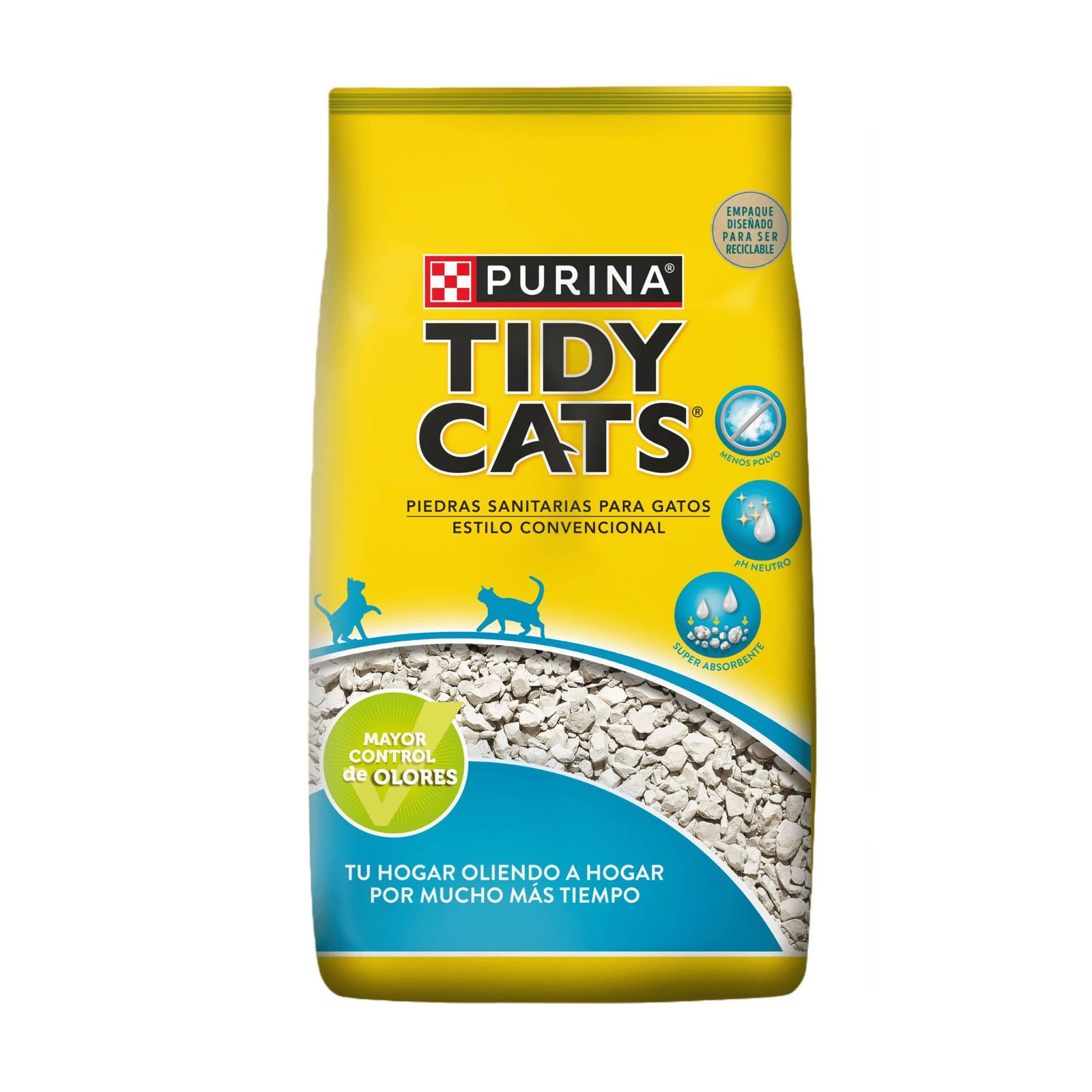 Piedras Sanitarias Tidy Cats Purina son un sustrato mineral 100% natural de alta calidad, diseñado para un máximo control de olores y absorción. Utilizan tecnología de triple secado, son aptas para hogares con varios gatos y ofrecen opciones aglomerantes (que forman grumos firmes) o convencionales, garantizando limpieza, higiene y fácil mantenimiento diario.
