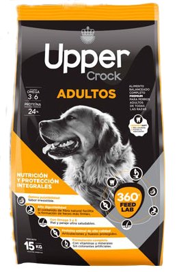 Upper crock es un alimento balanceado premium que satisface las necesidades nutricionales de perros adultos de todos los tamaños y razas. Ofrece 24% de proteína que contribuye a su musculatura y ácidos grasos Omega 3  y 6 que benefician la salud de su piel y pelaje.
